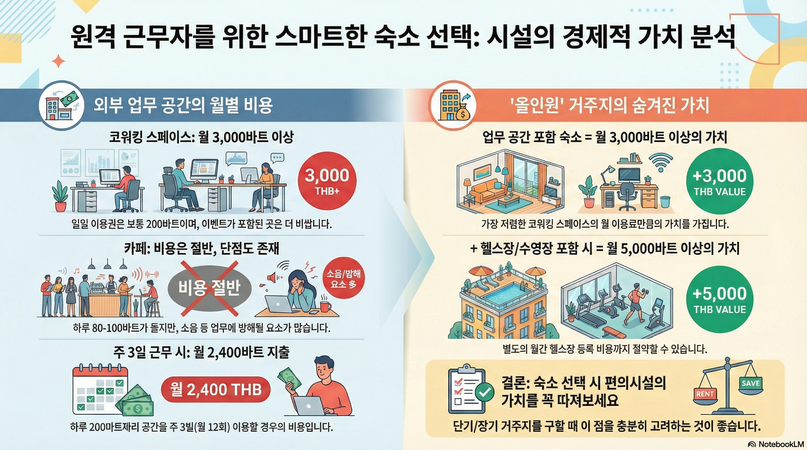 나같은 리모트 근무자는 일단 수면거주용으로 저렴한 서비스 아파트먼트를 구하면 기본적으로 데일리 근무에 대한 고정비가 지출되게 된다